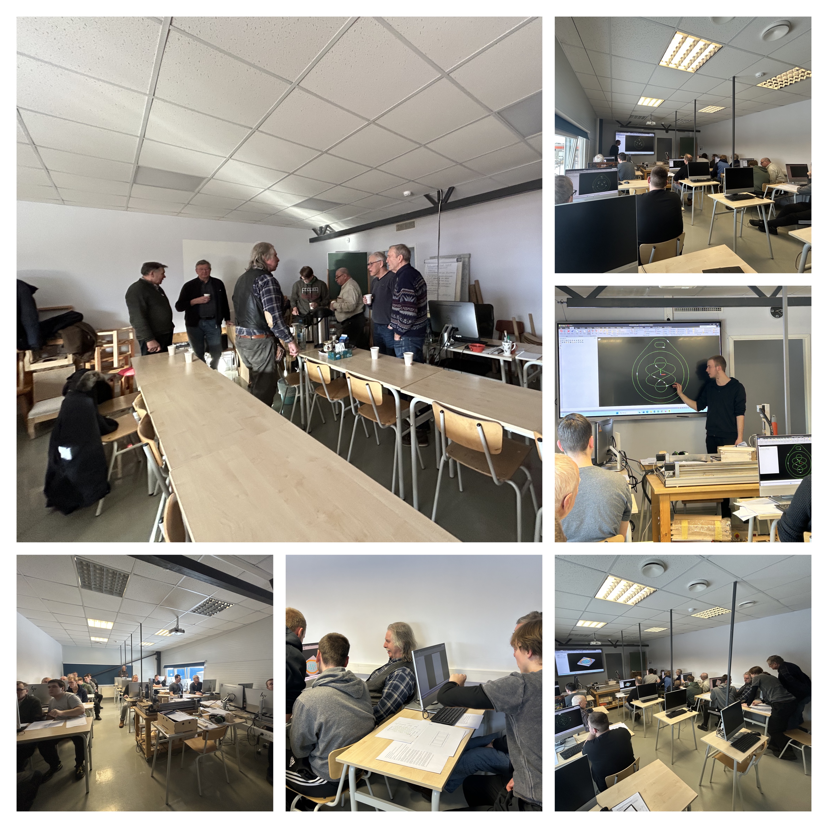 Esimene kohtumine toimus Haapsalu Kutsehariduskeskuse Puidumajas. T-24 rühma noored olid seekord õpetaja rollis, tutvustades Haapsalu Kuuri liikmetele CAD/CAM tarkvara ning juhendades jooniste loomist, mida hiljem CNC-pingil kasutada.