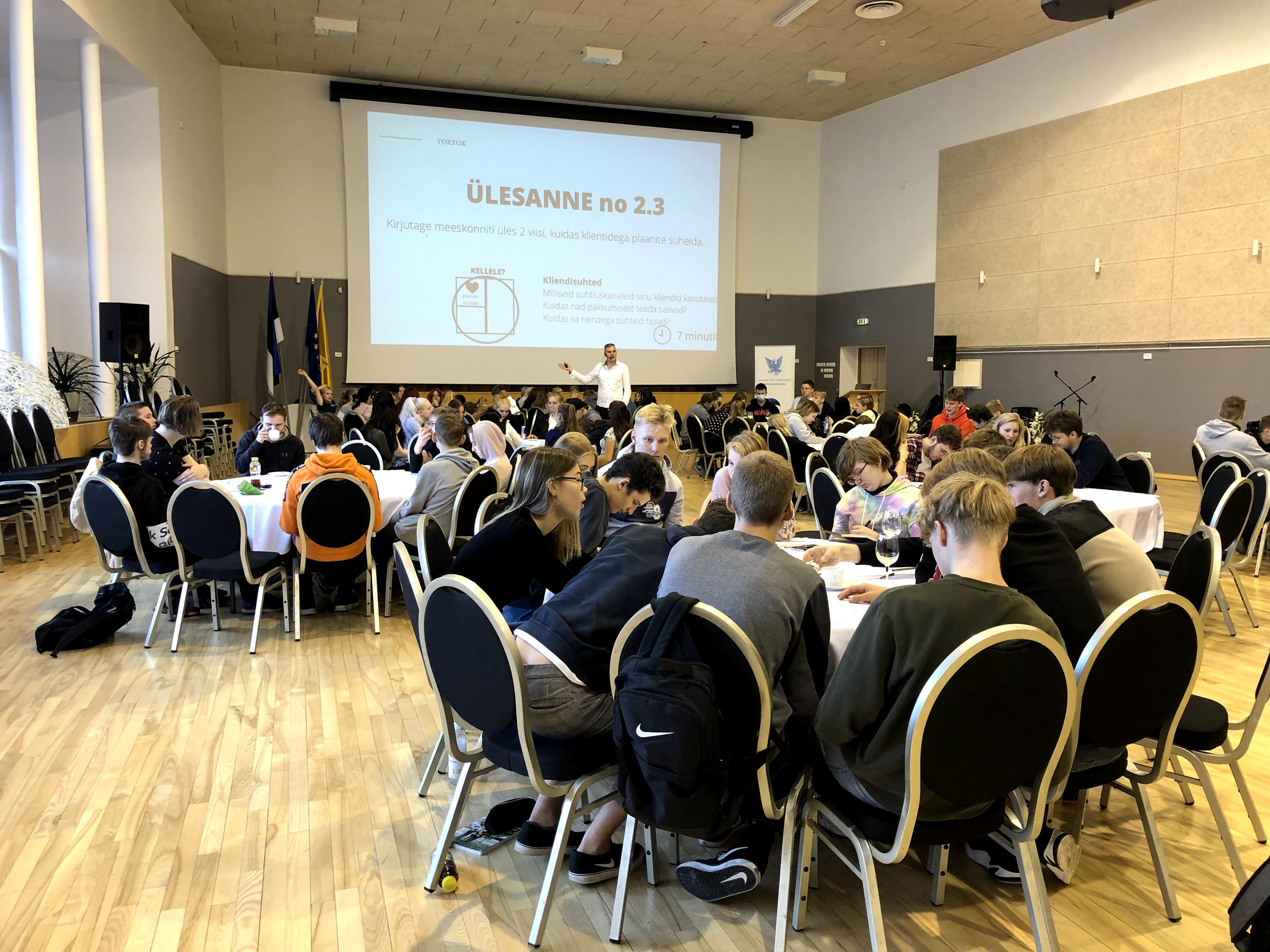 HKHK aulas toimus eile noortele suunatud inspiratsioonipäev, mis kandis nimetust Noorelt ettevõtjaks - jah ning milles osales 120 õpilast erinevatest Läänemaa koolidest. Kohal olid Haapsalu Kutsehariduskeskuse õppegrupid IT-20, M-20, K-20, V-19 ja V-20. Samuti võtsid inspiratsioonipäevast osa Kullamaa Keskkooli, Läänemaa Ühisgümnaasiumi, Noarootsi Gümnaasiumi, Palivere Põhikooli, Oru Põhikooli ja Haapsalu Põhikooli tublid ettevõtlikud noored.